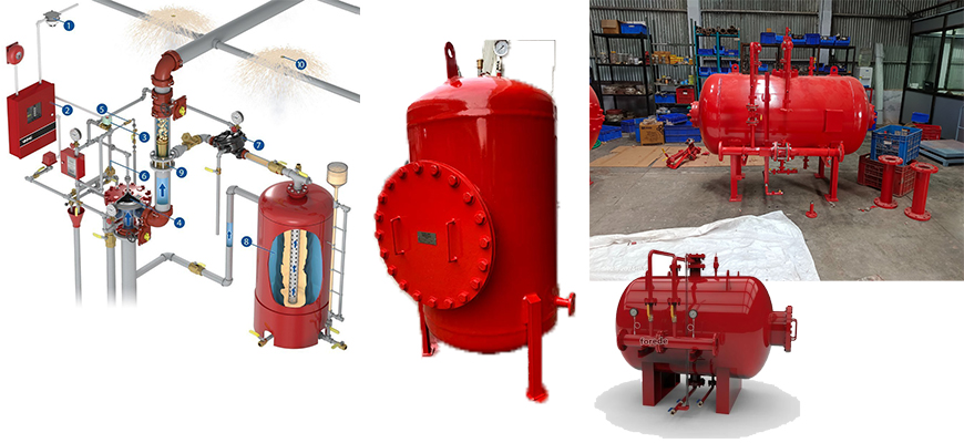 Foam Chamber is used in one of the most common application to protect vertical fixed roof (cone) liquid storage tanks, with or without internal floating roof with the low expansion foam system. The application of foam is on the basis that the risk comprises the total surface area of the fuel. The foam system design guidelines generally used are in accordance with NFPA- 11, standard. Foam chambers are defined by NFPA-11 as Type II discharge outlets for delivering the foam to the surface of a flammable liquid. The Foam Chambers are widely used with the Inline Foam Inductor, Balance Pressure Foam Proportioning system, Bladder Tank Proportioner or Foam Tender.